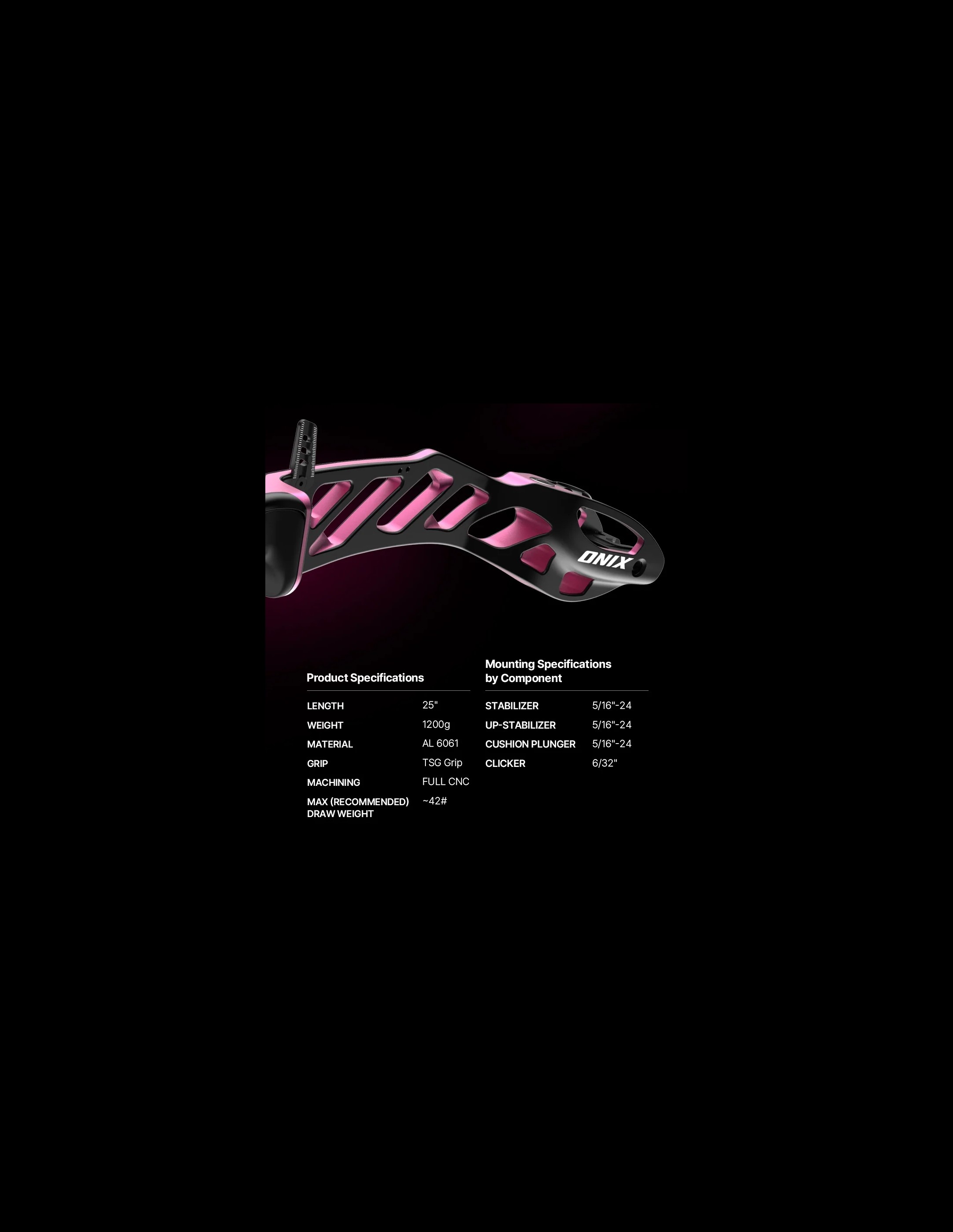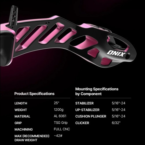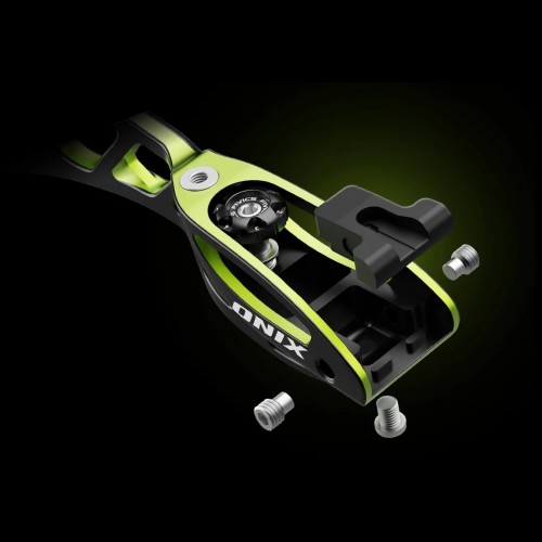 El ONIX 25" RISER representa el último avance de Fivics, cubriendo la brecha entre los modelos de nivel medio y alto. El ONIX Riser cuenta con el innovador sistema de alineación de palas ESA+, introducido por primera vez con el Titan-NXT, que bloquea de forma segura la conexión entre el riser y las palas para una mayor estabilidad, permitiendo al tiempo un ajuste cómodo de la alineación de las palas sin necesidad de retirarlas. El riser ONIX incorpora el grip TSG junto con los risers top de gama de Fivics, y por primera vez incluye 2 grips: un TSG alto y un nuevo TSG bajo. Como con todos los riers Fivics, el riser VX está diseñado con una precisión de 1 en 1000 mm utilizando fresado CNC completo superfino de aluminio 6061 duradero. Su anodización profunda y bicolor no solo añade un acabado vibrante, sino que también protege contra el desgaste. Sorprendentemente ligero, con menos de 2,65 lbs (1200 gramos), soporta rosca de 6/32" para clicker y es totalmente compatible con ILF.