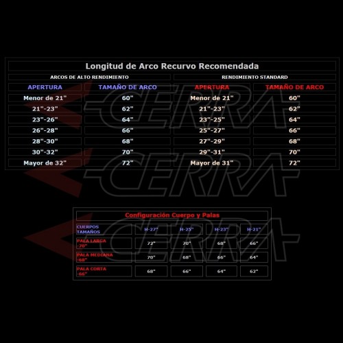 Diseño deflex con una geometría similar Hoyt que permite la instalación de palas con anclaje tipo ILF (Grand Prix).