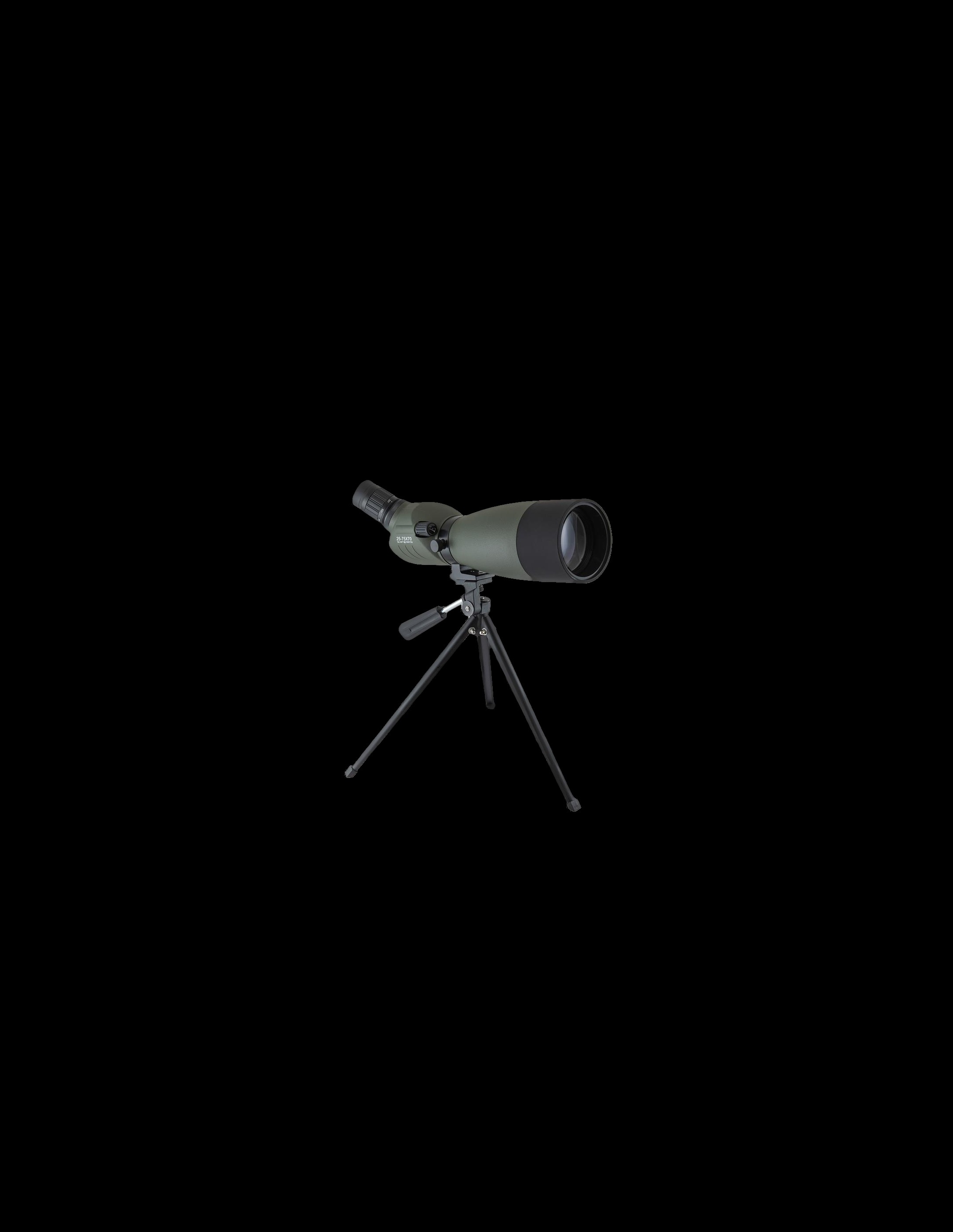 Telescopio de aumentos regulables de 25 a 75 aumentos y 70mm de campo. Incluye funda y trípode mini.