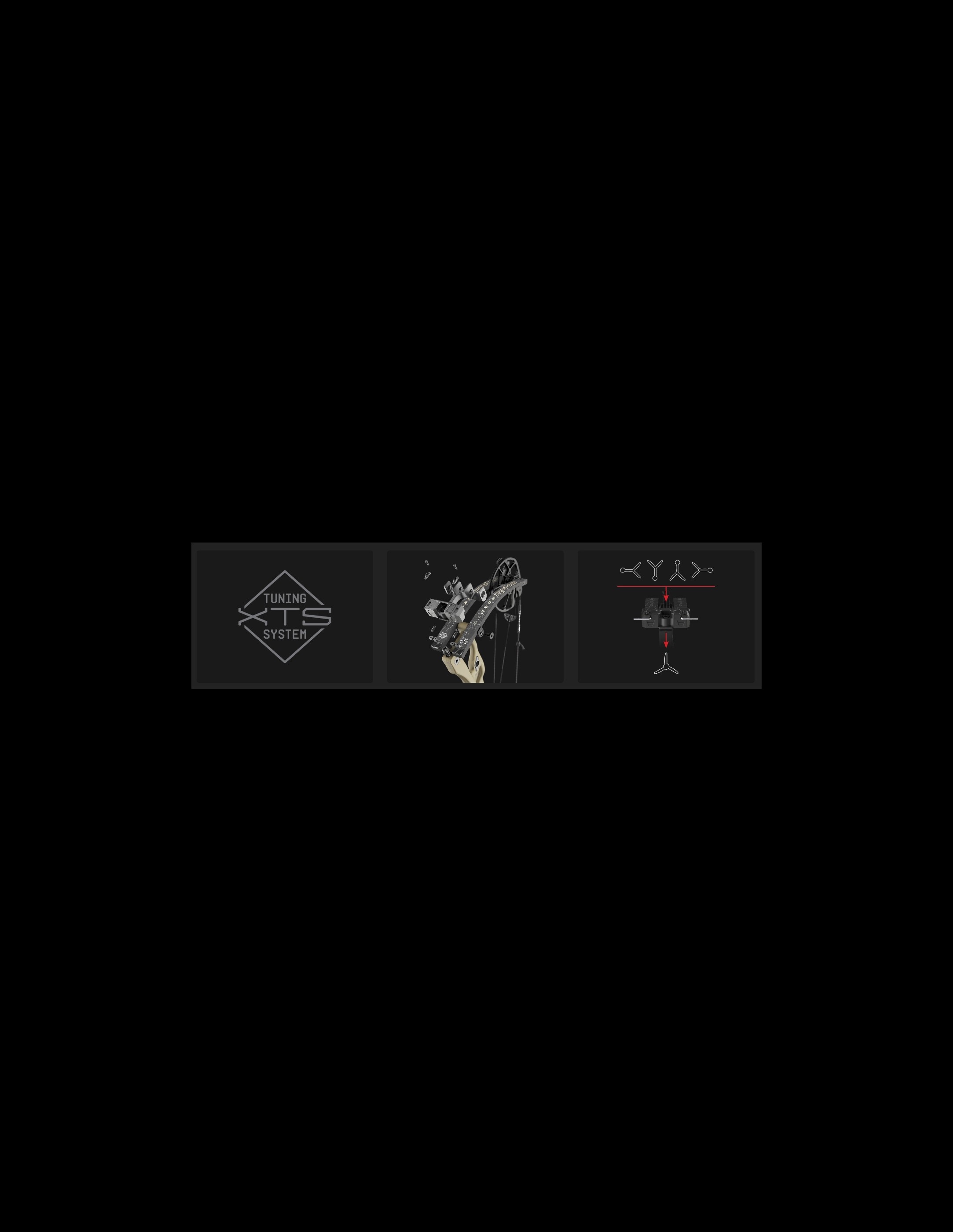 El sistema de afinación XTS, que tiene patente pendiente, ofrece una afinación rápida, sencilla y precisa sin necesidad de prensa. A diferencia de la mayoría de los sistemas que solo corrigen desgarros izquierdos y derechos, XTS también corrige desgarros altos y bajos, convirtiéndolo en una solución completa. Más allá de la afinación con papel, es ideal para afinar con eje desnudo, afinación de punta ancha e incluso pequeños ajustes de peso de arrastre. Afinar tu arco nunca ha sido tan fácil ni tan preciso.