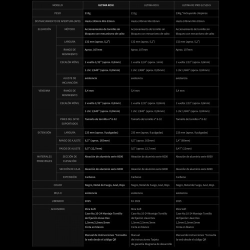 Heredando la tradición de visores ULTIMA que han durado ya más de 20 años. Desde su debut en 2005, ULTIMA RC ha sido seleccionado como medallista. Su modelo más reciente, el RC IV, ofrece una precisión y operatividad aún mayores.